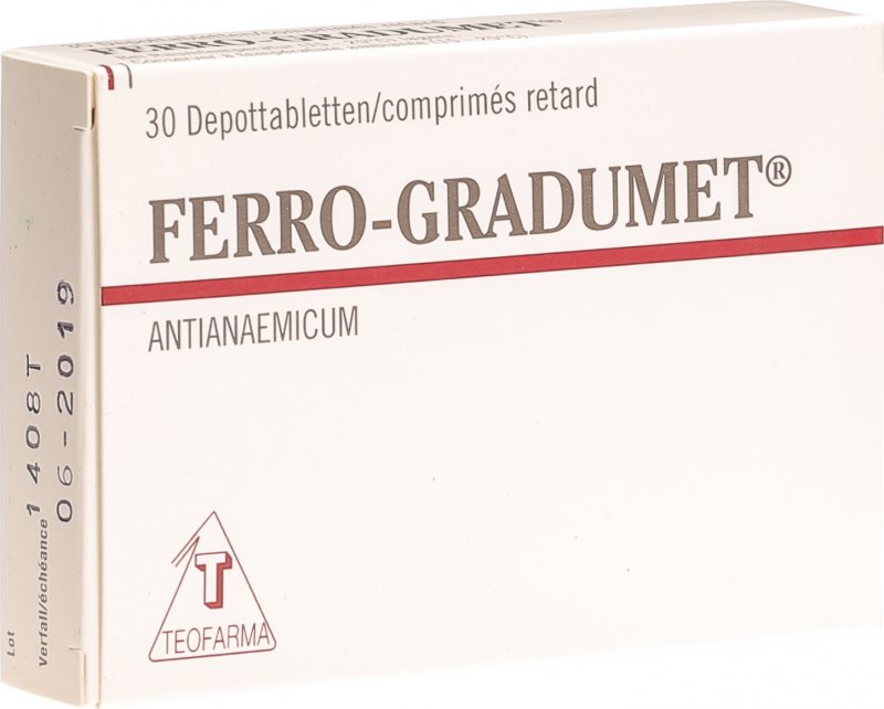Copolymeer van methylacrylaat en methylmethacrylaat magnesiumstearaat e470b polyvinylpyrrolidon e1201 lactose ethylcellulose e462 hydroxypropylmethylcellulose e464. Take fero gradumet with a full glass of water 8 oz 240 ml. Gastric intolerance is rare but ferro gradumet may be taken after a meal if it does occur. Fiecare comprimat cu eliberare prelungită conţine conţine fer elementar 105 mg sub formă de sulfat feros uscat 325 mg şi excipienţi.